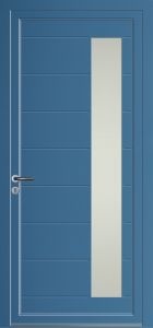 Modèle Dannes Porte d'entrée Design ALU - Sablage uni Prendre RDV Devis Découvrez les possibilité de personnalisation Bleu 5007 Blanc 9016