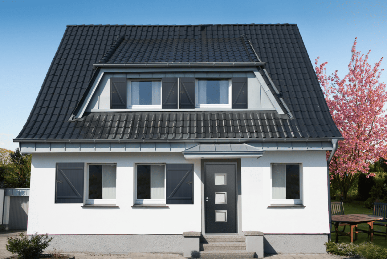 Modèle La Madeleine Porte d'entrée Design ALU - Sablage uni Prendre RDV Devis Découvrez les possibilité de personnalisation Rouge 3011 Gris anthracite 7016 Blanc 9016