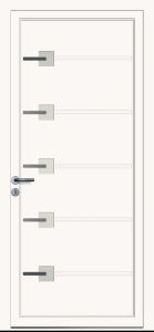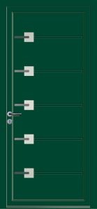 Modèle Linselles Porte d'entrée Design ALU - Sablage uni et insert inox Prendre RDV Devis Découvrez les possibilité de personnalisation Blanc 9016 Vert 6005