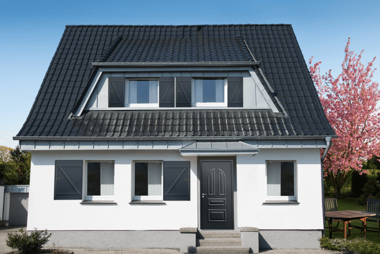 Modèle Stella Porte d'entrée Tradition ALU - Moulures Embouties Prendre RDV Devis Découvrez les possibilité de personnalisation Bleu 5014 Jaune 1002 Bleu 5025 Gris 7006 Vert 6007